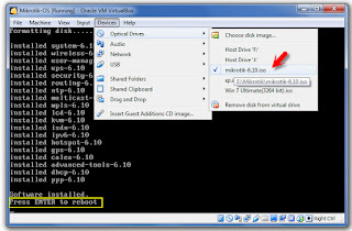 Sebaiknya jangan dulu menekan enter untuk reeboot, tapi keluarkan dulu file instalasi mikrotik yang digunakan, caranya pilih dengan klik menu Devices > Mikrotik 6.33.exe untuk menghilangkan centang.